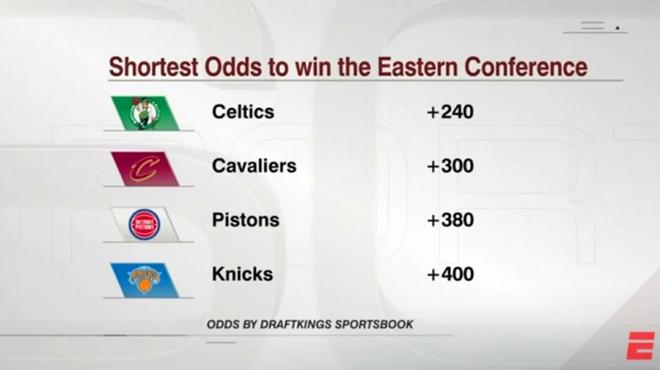 这一点也直观展现在东部冠军赔率方面,在塔图姆确定复出消息后,东部赔率迅速更新,凯尔特人排名飙升直接力压骑士升至东部第一。