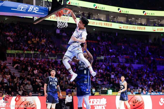 全明星正赛开始前,徐杰作为南区球员代表领唱国歌。随后,万众期待的南北对决正式拉开帷幕。开场第一攻,徐杰便干净利落地强突篮下得手,成为本届全明星正赛首位得分球员。此后,双方进攻端你来我往,各种极具“暴力美学”的扣篮接连上演,徐杰和胡明轩则在外线释放火力,前者在半场结束前三分再中,帮助南区队以85-82领先。
